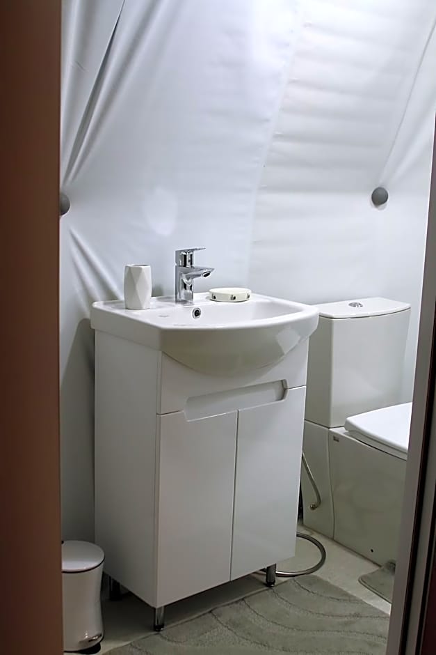 This air-conditioned tent is consisted of of a flat-screen TV with streaming services, a private bathroom as well as a balcony with city views. The unit has 1 bed.